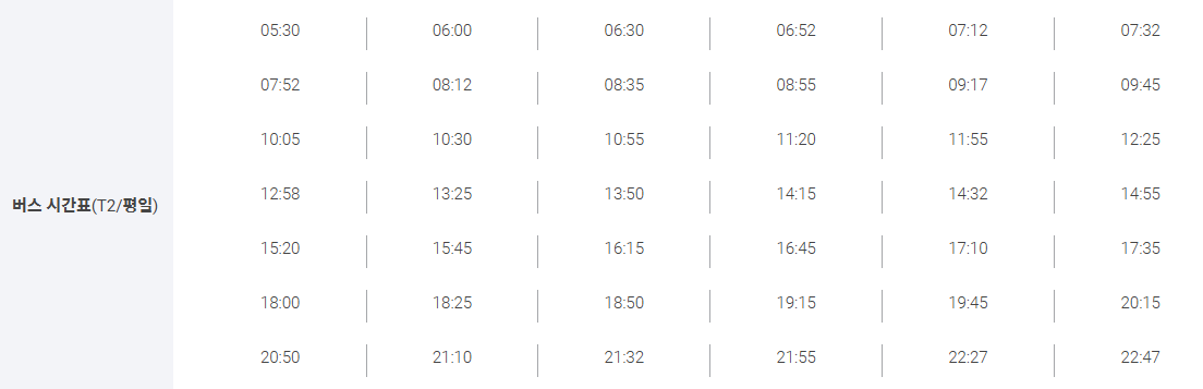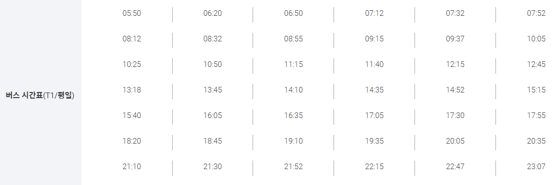- 막차 시간(제1터미널 23:07, 제2터미널 22:47)을 미리 확인하고, 심야 추가 요금이 부과될 수 있으니 참고하세요.
