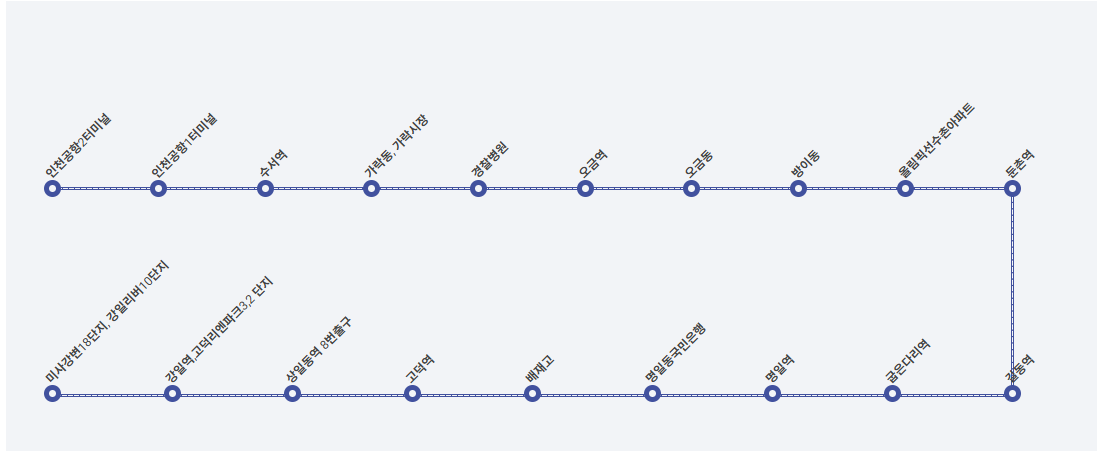 - 인천공항 제2터미널 → 제1터미널 → 수서역 → 가락시장 → 경찰병원 → 방이동 → 둔촌역 → 명일역 → 고덕역 → 상일동역 → 강일역 → 미사강변 단지